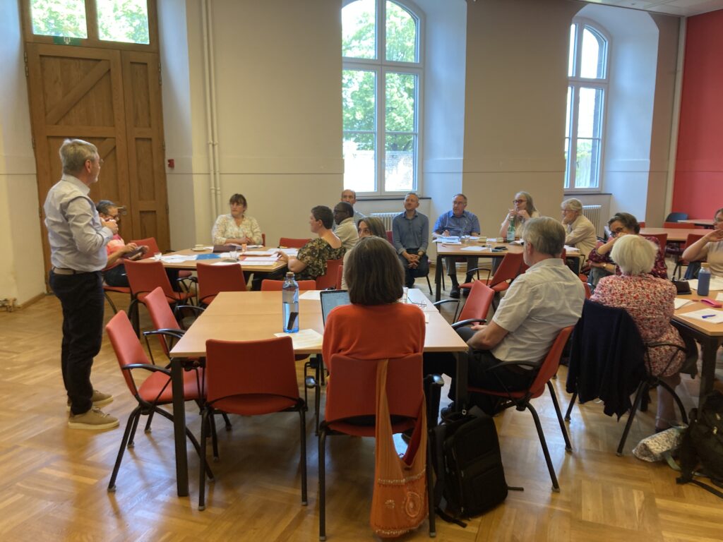 - La troisième séance (23/4/2026) ira à la rencontre de pratiques déjà installées, d’initiatives déjà prises, d’expériences déjà vécues dans d’autres contextes et qui pourraient devenir autant de sources d’inspiration pour nos communautés en Belgique. Il s’agira, comme le précisent les « Pistes » (p. 19), « de recueillir les fruits des expériences faites par les Églises locales » et d’oser tracer de nouveaux chemins fidèles à l’Évangile.